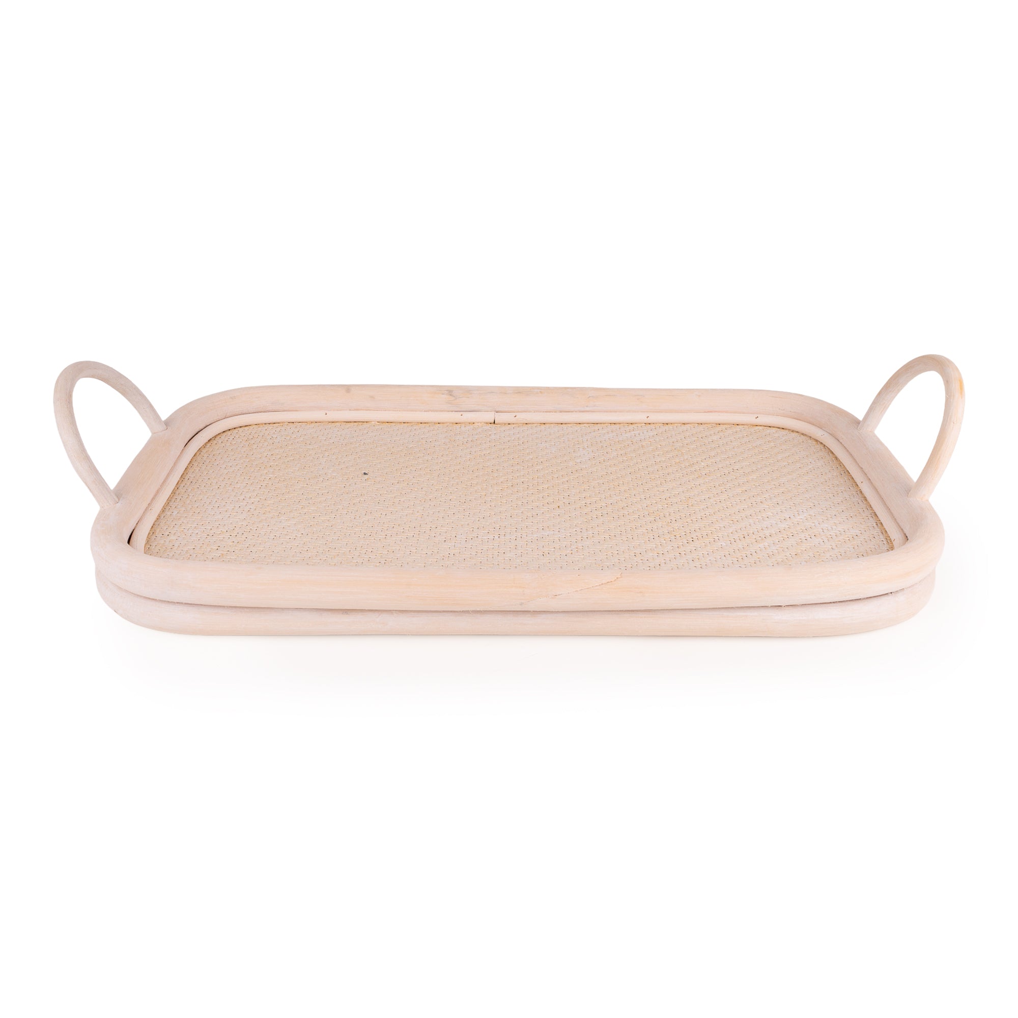 Serve or style with this 46cm rattan tray, designed with integrated handles for easy carrying.