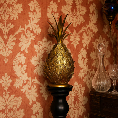 Bring a touch of exotic luxury to your interiors with the Antique Gold Pineapple Ornament, a striking décor piece that symbolises warmth, hospitality, and style. Crafted with intricate detailing and a gold finish, this statement ornament is designed to stand out in any setting.