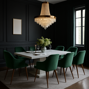 Our Aldridge Dining Chairs in dark green offer a fusion of sophistication and nature-inspired charm for your dining haven. Crafted with meticulous attention to detail, these dark green dining chairs seamlessly blend contemporary design with a touch of rustic allure.