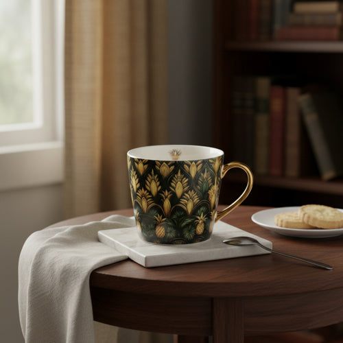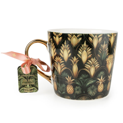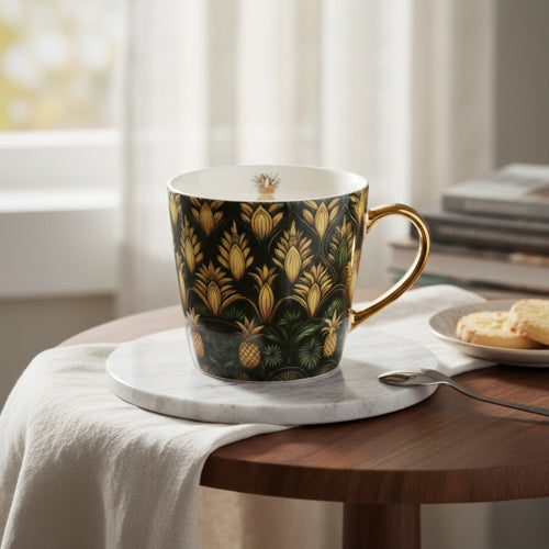 Add a touch of vintage glamour to your daily coffee or tea with this beautifully designed art deco mug. Featuring a repeating gold pineapple motif, the design is inspired by classic Art Deco patterns and finished with an elegant gold handle for a refined, statement look. Part of the Historic Royal Palace Collection, it brings heritage-inspired charm to everyday tableware.