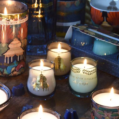 Discover rich fragrance and elegant design with the Jaisalmer Kashmir Pear & Fig Candle Trio from the Silk Road Collection. Presented in decorative glass holders adorned with golden domed motifs, this set is inspired by the grandeur of Jaisalmer’s architecture and cultural heritage.