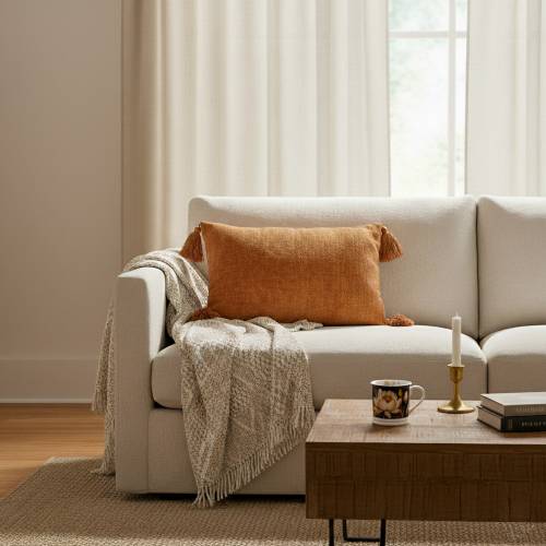 Add warmth and character to your interiors with the Rectangular Terracotta Tassel Cushion. This cushion is crafted in a rich terracotta fabric and finished with tassels on each corner for a relaxed yet stylish look.