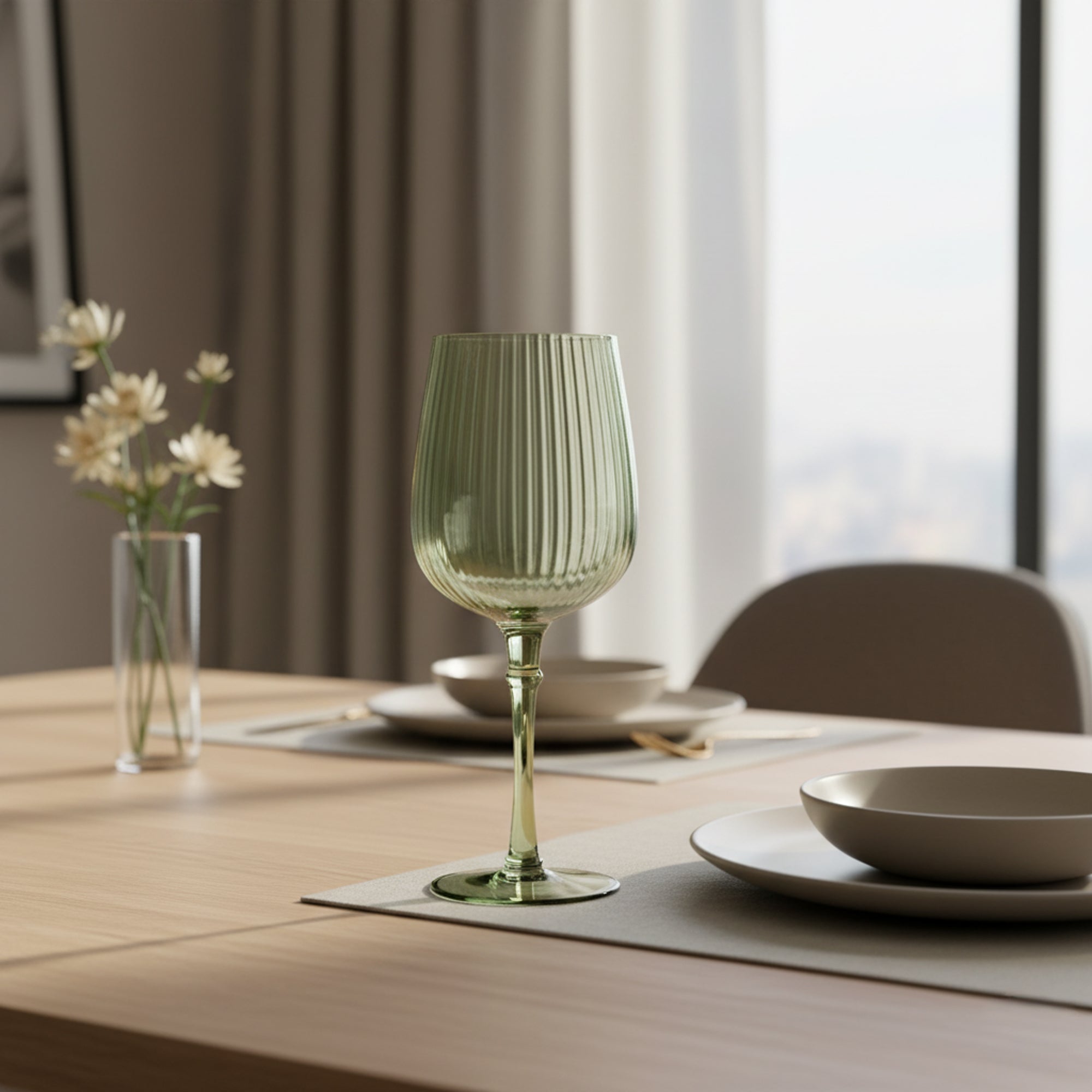 Bring a touch of elegance to your table with this Green Wine Glass. Featuring a subtle ribbed design and a soft green tint, it combines timeless style with modern charm. Whether you’re enjoying a smooth red, crisp white, or a refreshing rosé. Perfect for everyday dining or special occasions, it’s a beautiful addition to any glassware collection.