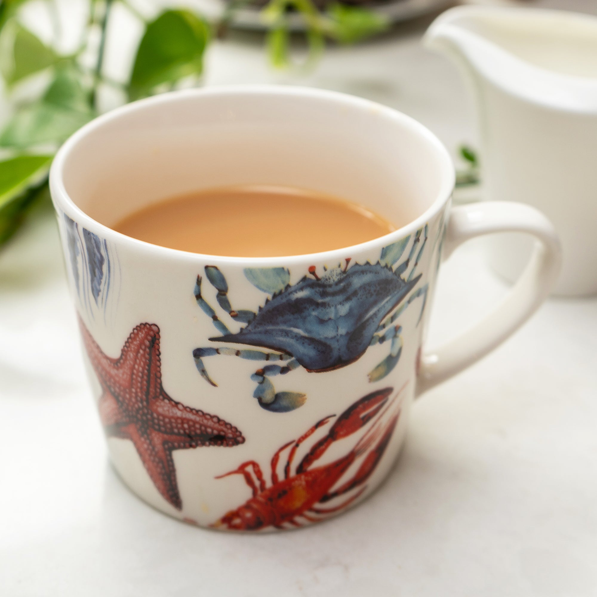 Dive into oceanic charm with our Wide Conical Mug featuring delightful sea creatures! This uniquely designed mug brings a touch of whimsy and character to your morning routine or afternoon tea. Adorned with beautifully illustrated marine life, including vibrant lobsters, elegant star fish, and charming vibrant jellyfish, each sip transports you to a serene underwater paradise.