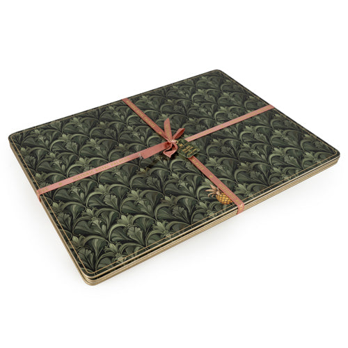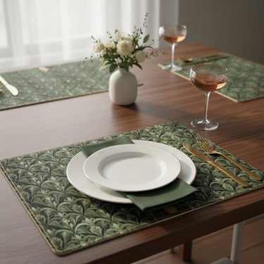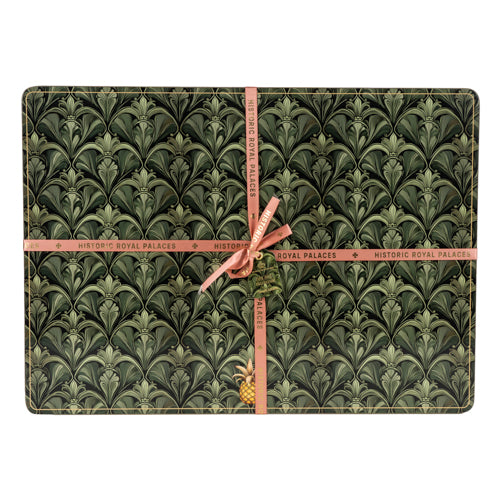 Bring a sense of vintage elegance to your table with these green placemats, finished in a rich, dark sage palette and a striking Art Deco inspired pattern. The design features a repeating scalloped fan motif, reminiscent of stylised palm leaves, creating a layered look that feels both structured and decorative. Part of the Historic Royal Palace Collection, they bring heritage inspired charm to everyday dining.