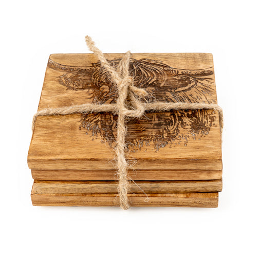 Rustic Wooden Highland Cow Coasters