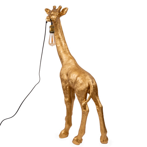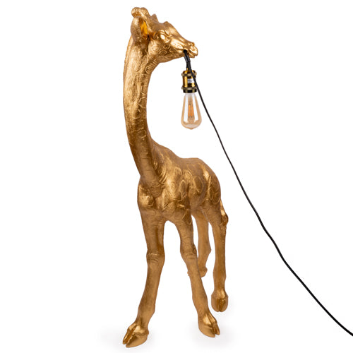 The uniquely tall, slender beauty of our giraffe-shaped gold lamp is a modern adornment that’s impossible to ignore, for the simple fact of its free-standing majesty. This giraffe light is also far from dull, as it’s even made with the whimsical twist of it carrying the lightbulb in its mouth rather like a lantern, as though it’s your constant companion.