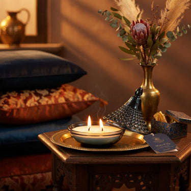 The Kashmir Pear & Fig fragrance combines the sweetness of pear with the earthy depth of fig, creating a sophisticated and long-lasting aroma. Its three-wick design ensures an even, steady burn and a fuller fragrance release, perfect for setting a warm and inviting atmosphere.