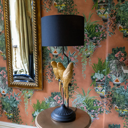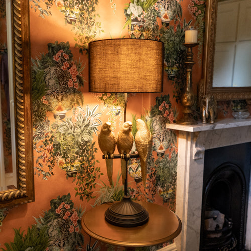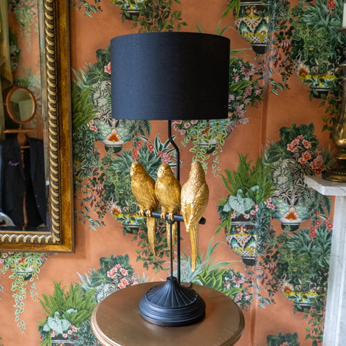 Trio Parrots Lamp: Black Gold Base with Matching Shade