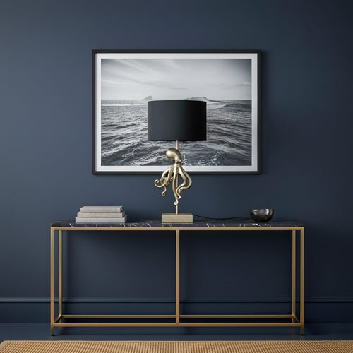 Bring character and style to your home with the Silver Octopus Lamp, a unique piece that combines decorative design with practical lighting. Crafted from resin in a silver finish, the base features a detailed octopus design that feels both modern and distinctive.