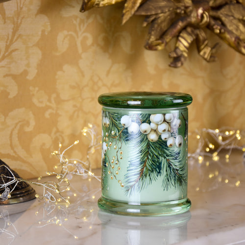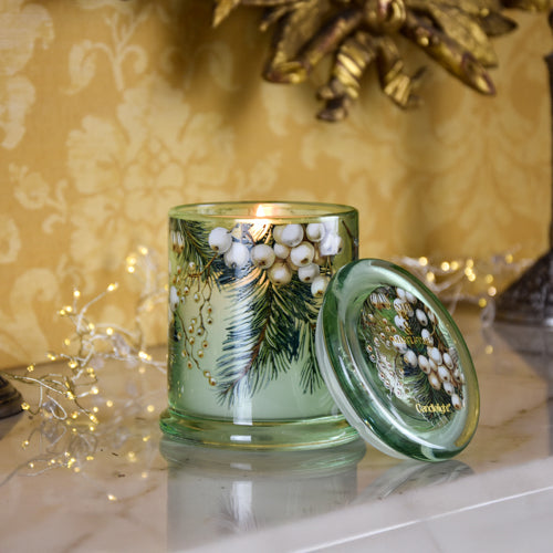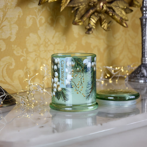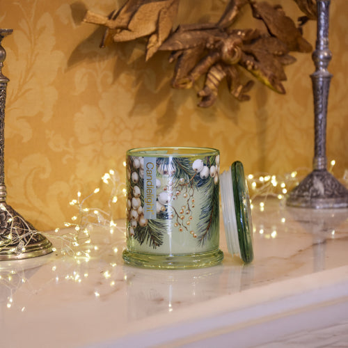 This beautifully crafted glass jar candle features an elegant Winter Fir and Mistletoe design in rich gold and green tones, paired with a fragrance that captures the freshness of winter fir and the festive warmth of mistletoe. As the flame flickers, the light dances through the patterned glass, creating a calming, comforting atmosphere. Perfect for unwinding at the end of a busy day, it’s the ideal companion for relaxing evenings wrapped in your favourite blanket.