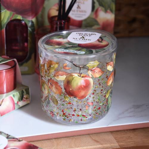 Enjoy a cosy autumn glow with the Orchard Apple & Nutmeg LED Glitter Candle. Blending the crisp fragrance of orchard apples with the warming spice of nutmeg it creates a comforting seasonal aroma that brings autumn into your home.