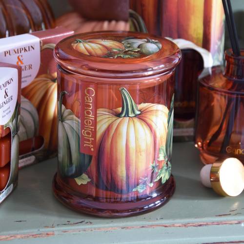 Infused with the inviting fragrance of spiced pumpkin and warming ginger, it fills your home with a comforting aroma perfect for chilly evenings. As the candle burns, the glow from the glass jar creates a soothing, ambient light, making it the ideal accessory for cosy nights in or festive gatherings.