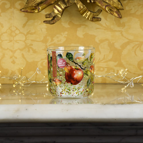 Enjoy a cosy autumn glow with the Orchard Apple & Nutmeg LED Glitter Candle. Blending the crisp fragrance of orchard apples with the warming spice of nutmeg it creates a comforting seasonal aroma that brings autumn into your home.