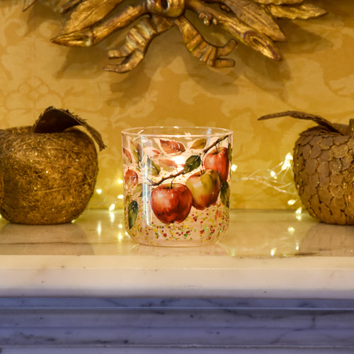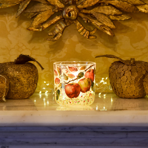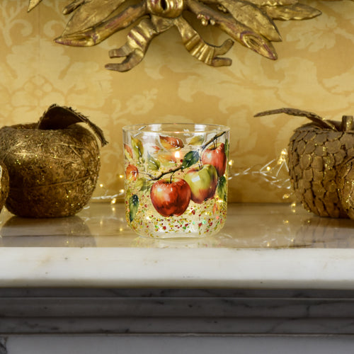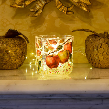 Set in a charming apple motif holder, the candle features a decorative gel centre with glitter. When the tealight is lit, the LEDs switch on and shimmer with a flame-like effect, producing a warm and inviting display. Stylish and fragrant, it’s the perfect addition to living rooms, dining areas, or as a thoughtful seasonal gift.