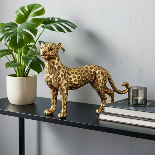 The feline grace and muscular elegance of the creature is beautifully captured with this finely detailed gold leopard ornament, an ideal accessory to deliver worldly sophistication to a living room, home office or home library space.