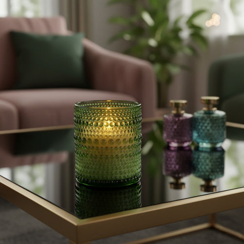 Bring soft light and subtle style to your home with this Olive Green LED Glass Candle. Its warm glow mimics real candlelight without the mess or flame, making it a safe option for any space. The frosted glass design and earthy tone add a touch of natural elegance to your decor.