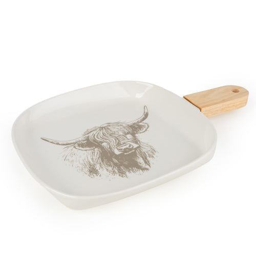 Bring rustic charm to your hosting with this white highland cow ceramic serving paddle, finished with a natural wooden handle for easy carrying and presentation. Featuring a detailed Highland cow illustration, it blends clean, bright styling with a countryside touch, making it suitable for both modern kitchens and cosy dining spaces.